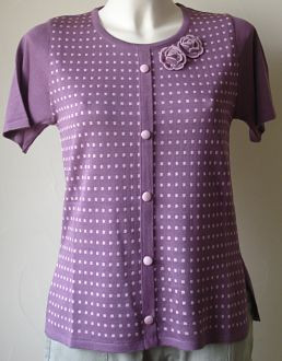 Col rond, fente coté, coloris rose à motifs, acrylique 100 %, lavage 30°